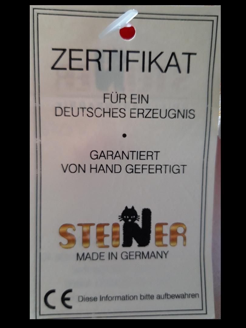 - Die Ur-Adele aus der Stofftiermanufaktur Steiner in Thüringen (Größe 25 cm) für einen Verkaufspreis von 39,90 € (Bilder unten)